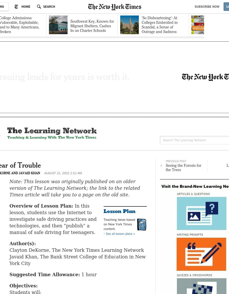 Inform teenagers about safe driving techniques. Young journalists use the Internet to investigate safe driving practices and technologies then publish a manual for the teen drivers in their life.