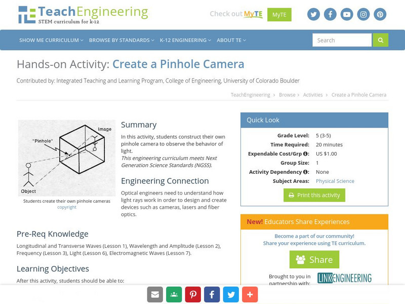 In this activity, students construct their own pinhole camera to observe the behavior of light.