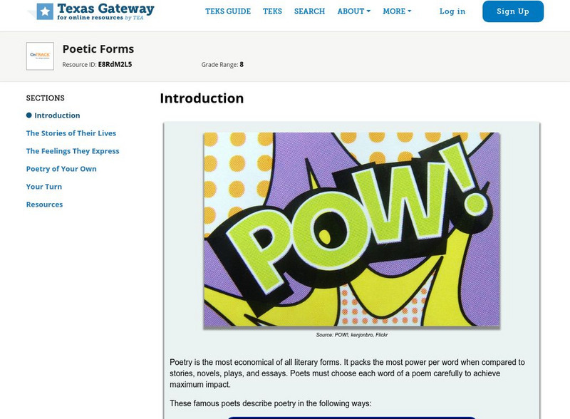 [Accessible by TX Educators. Free Registration/Login Required] Learn how to compare and contrast the relationship between the purpose and characteristics of different poetic forms: epic poetry and lyric poetry.