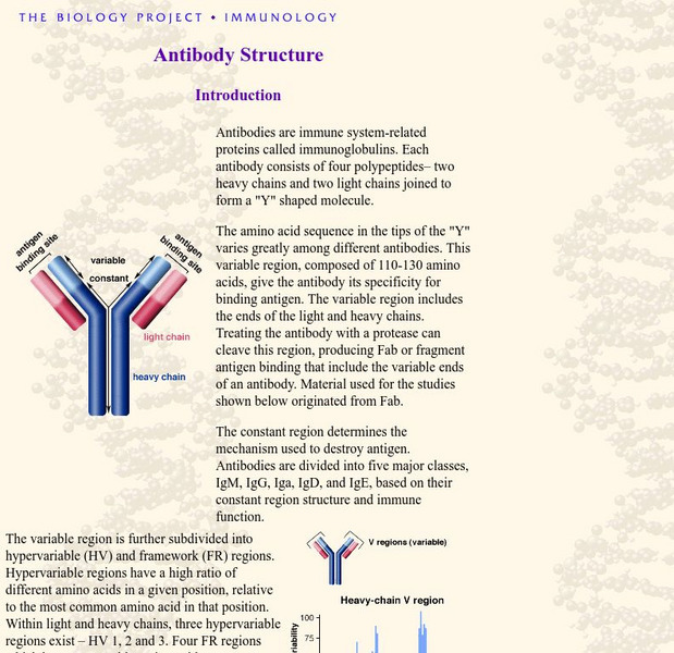 A short tutorial illustrating the structure of the antibody, describing how the structure fosters its function.