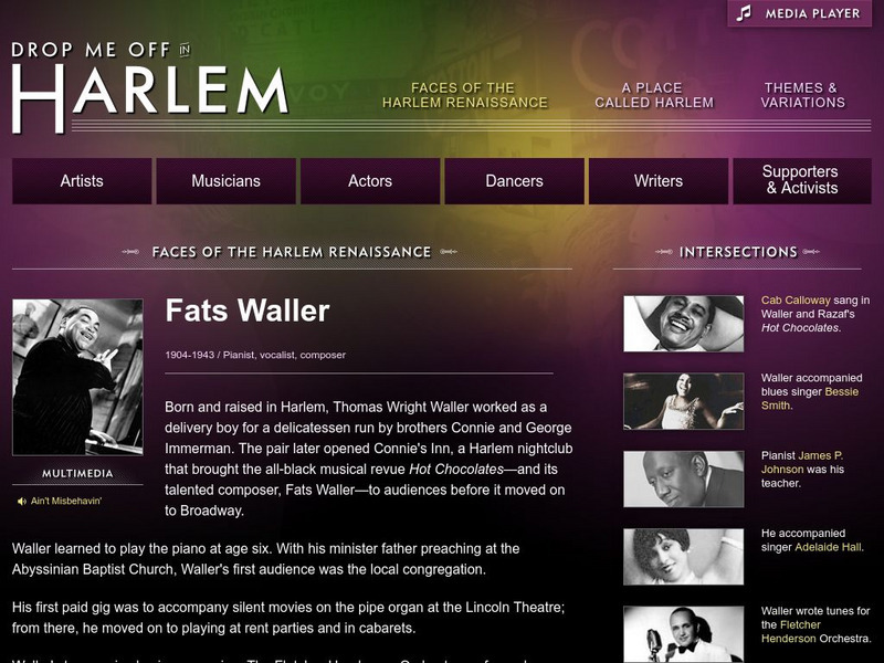 This resource presents a brief biography about jazz pianist and composer Fats Waller. Also featured in this resource are a couple of audio clips of his music.