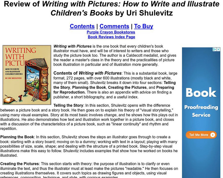 A book review of "Writing with Pictures: How to Write and Illustrate Children's Books." Includes critical information, contents and comments, as well as a link to the book's Amazon.com page. A good resource for anyone interested in children's literature.