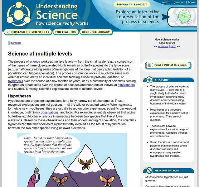 Describes how the process of science works the same whether at the microscopic level or over a long period time. Clearly explains what a theory and a hypothesis are, and what an over-arching theory is.