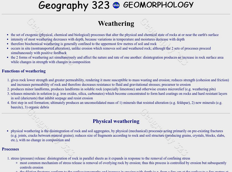 Discusses the details of chemical weathering such as carbonation, cation exchange, chelation, oxidation and hydrolysis.