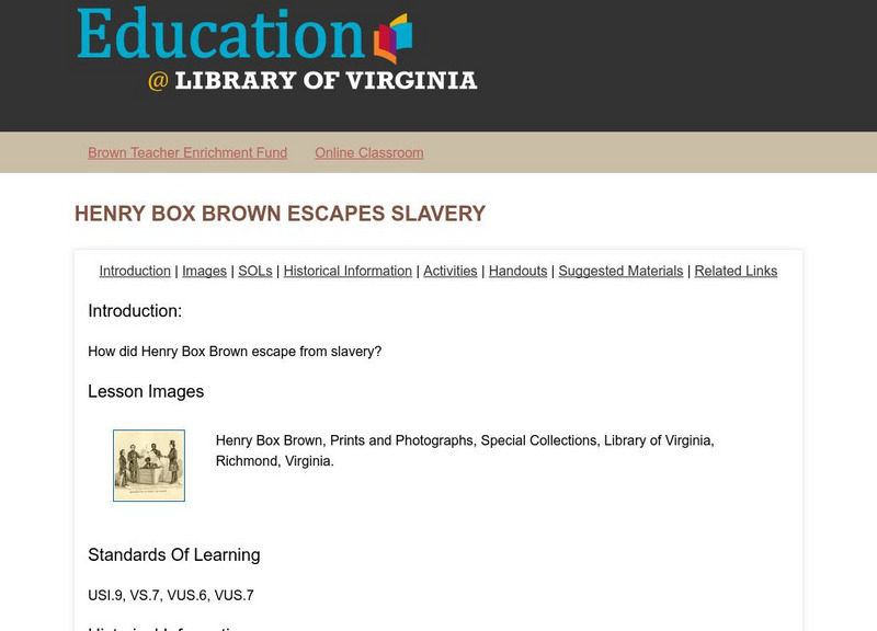 How did Henry Box Brown escape from slavery? A lesson based on the true story of his escape, Henry's Freedom Box by Elden Livine.