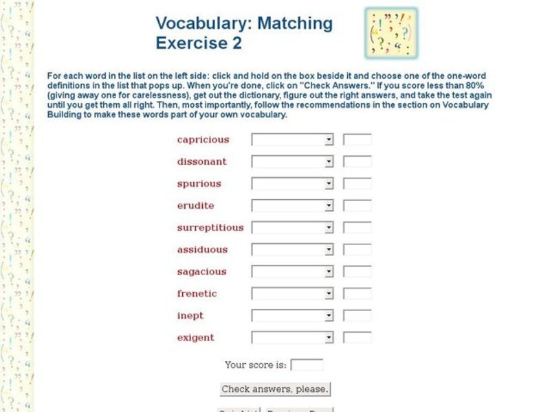 This Vocabulary: Matching Exercise 2 interactive also includes: