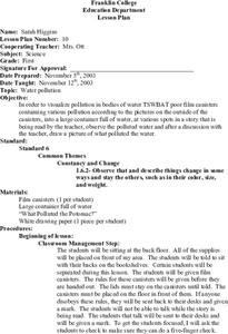 First graders investigate what causes water pollution and conduct a water pollution experiment. They listen to the story "What Polluted the Potomac?," and during the story pour small containers of dirty water into a large container at the front of the class. Students then create a drawing of the polluted water.