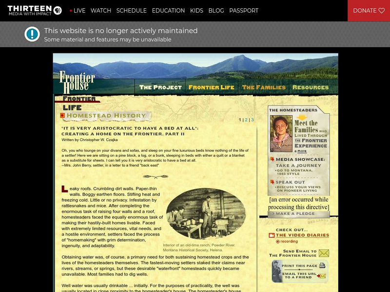 Making a house a home was a struggle on the plains. This companion essay to the PBS series, Frontier House, describes the problems with getting water, outhouses, and furnishing the sod house.
