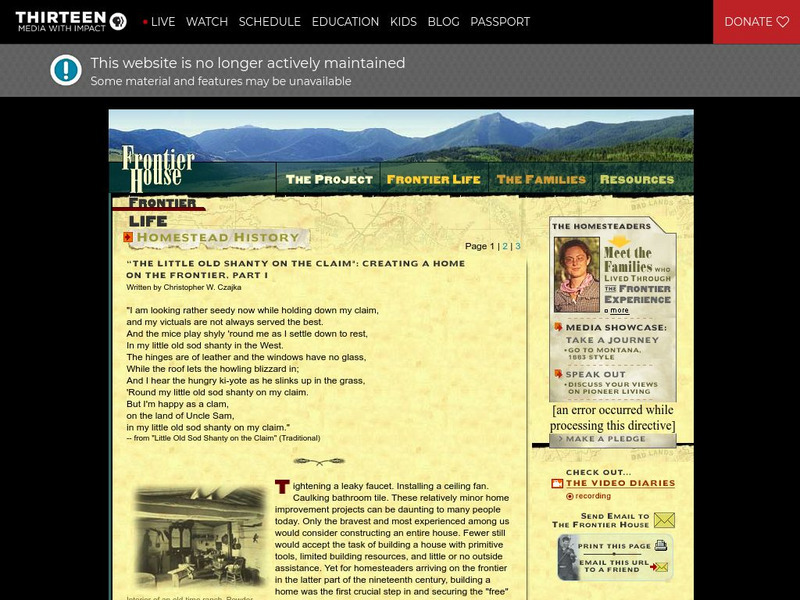 An essay provided as part of the PBS series, Frontier House, describes the housing options of pioneers on the prairies in eastern Montana.