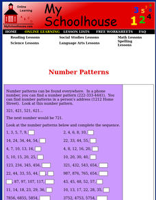 In this online interactive number patterns worksheet, learners use their math skills to fill in the 22 blanks with the appropriate numbers to complete the 22 number sequences.