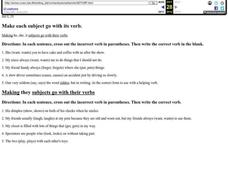 In this grammar instructional activity, learners cross out the incorrect verb in parentheses and then write the correct verb in the blanks in ten sentences.