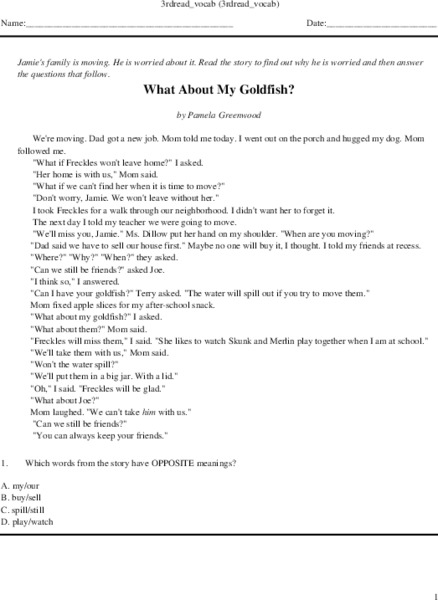 This Third Grade Reading and Vocabulary Practice worksheet also includes: